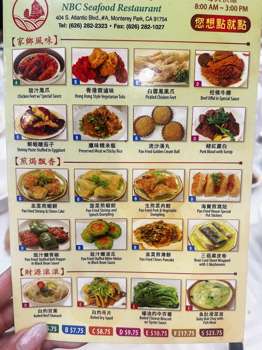 Cuisine Type: NBC Seafood offers a diverse menu that shines with fresh seafood and expertly crafted dishes. Popular items such as the Duck and Taro with Barbecue Sauce and Seafood with Taro and Pumpkin in Clay Pot showcase the kitchen's innovative approach to classic flavors, while the Deep Fried Chiu Chow Style Prawn and Crab Balls provide a tantalizing crunch that's hard to resist. The House Special Steam Rice with Crab is a must-try for seafood enthusiasts, delivering a delightful richness that pairs beautifully with their array of sauces.